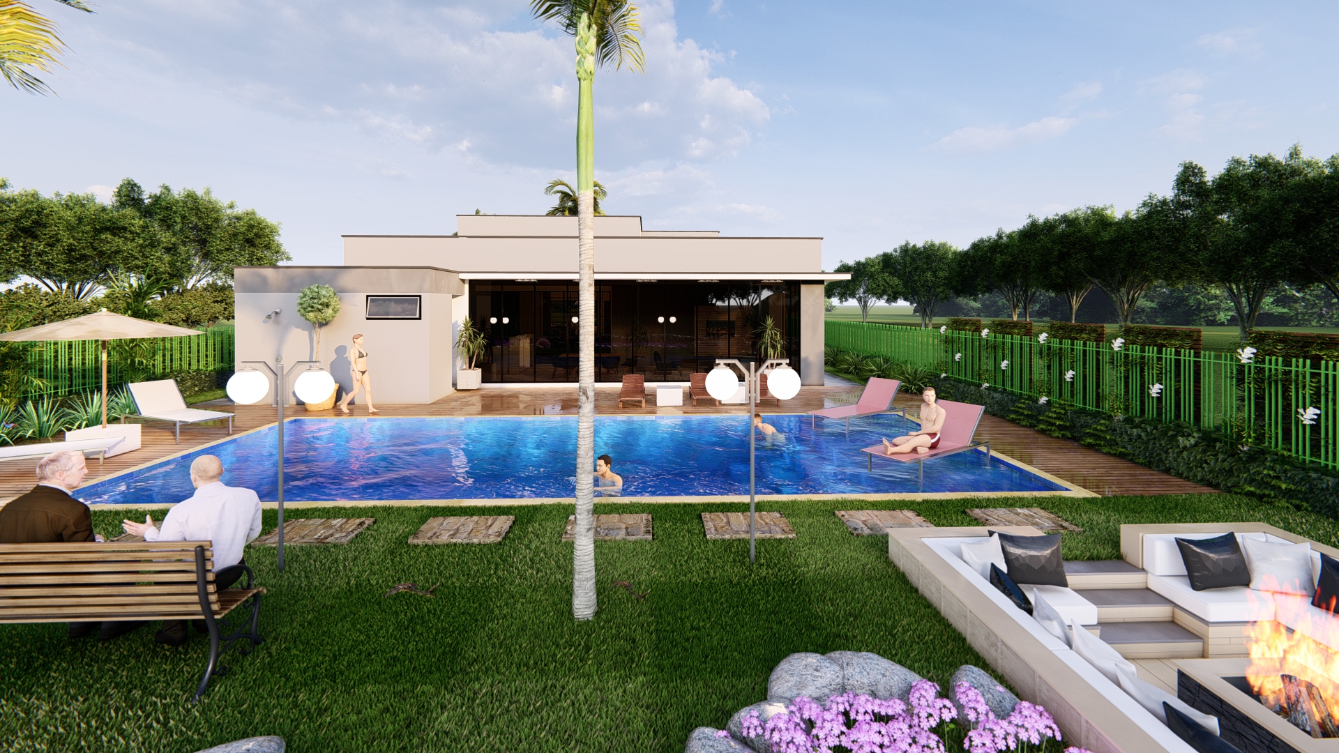 Casa térrea de 415 m² de construção sob um terreno de 1000 m², com 4 suítes, sala de jantar, cozinha e sala de estar integradas com um espaço aberto interligando todos estes ambientes, conectando o morador a área externa da casa e contará com muito paisagismo e uma piscina fantástica, dando um aspecto hoteleiro.