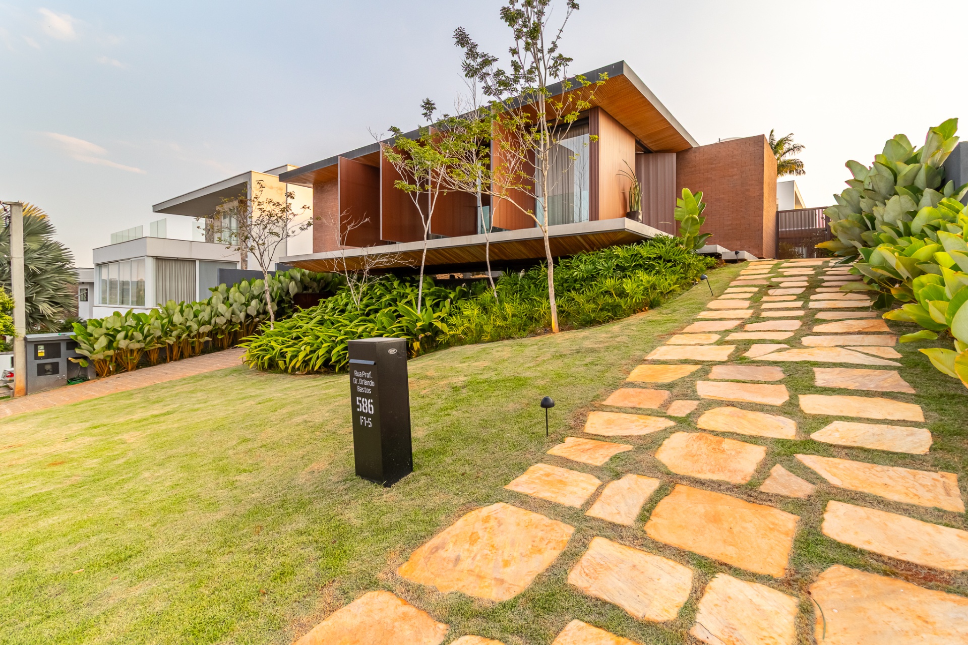 Paisagismo encantador, com um jardim cuidadosamente planejado que valoriza cada espaço da casa;
